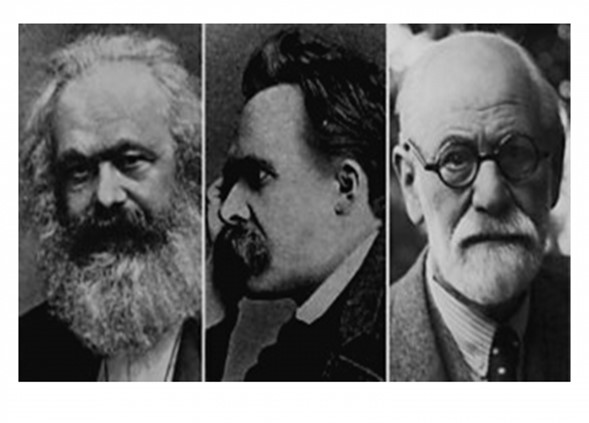 El primer rasgo que acerca a este trio de pensadores es que nos presentan un juego de espejos que nos inquietan, pues no muestran un reflejo halagüeño, sino “heridas narcisistas”. Las heridas narcisistas las había mencionado Freud para hablar del lugar que tenía, en la historia del conocimiento, su teoría. El austriaco planteó que se habían provocado tres heridas narcisistas a la percepción de que el hombre era el centro del mundo. Estas habían sido asestadas por tres personajes: Copérnico que habría mostrado que el sol, y no la tierra, era el que estaba en el centro del universo (teoría heliocéntrica); Darwin que habría revelado que el hombre descendía del mono (teoría de la evolución); finalmente, la que él mismo diera al descubrir que la conciencia reposaba sobre la inconsciencia y que, por tanto, el hombre no es primordialmente racional.[4]